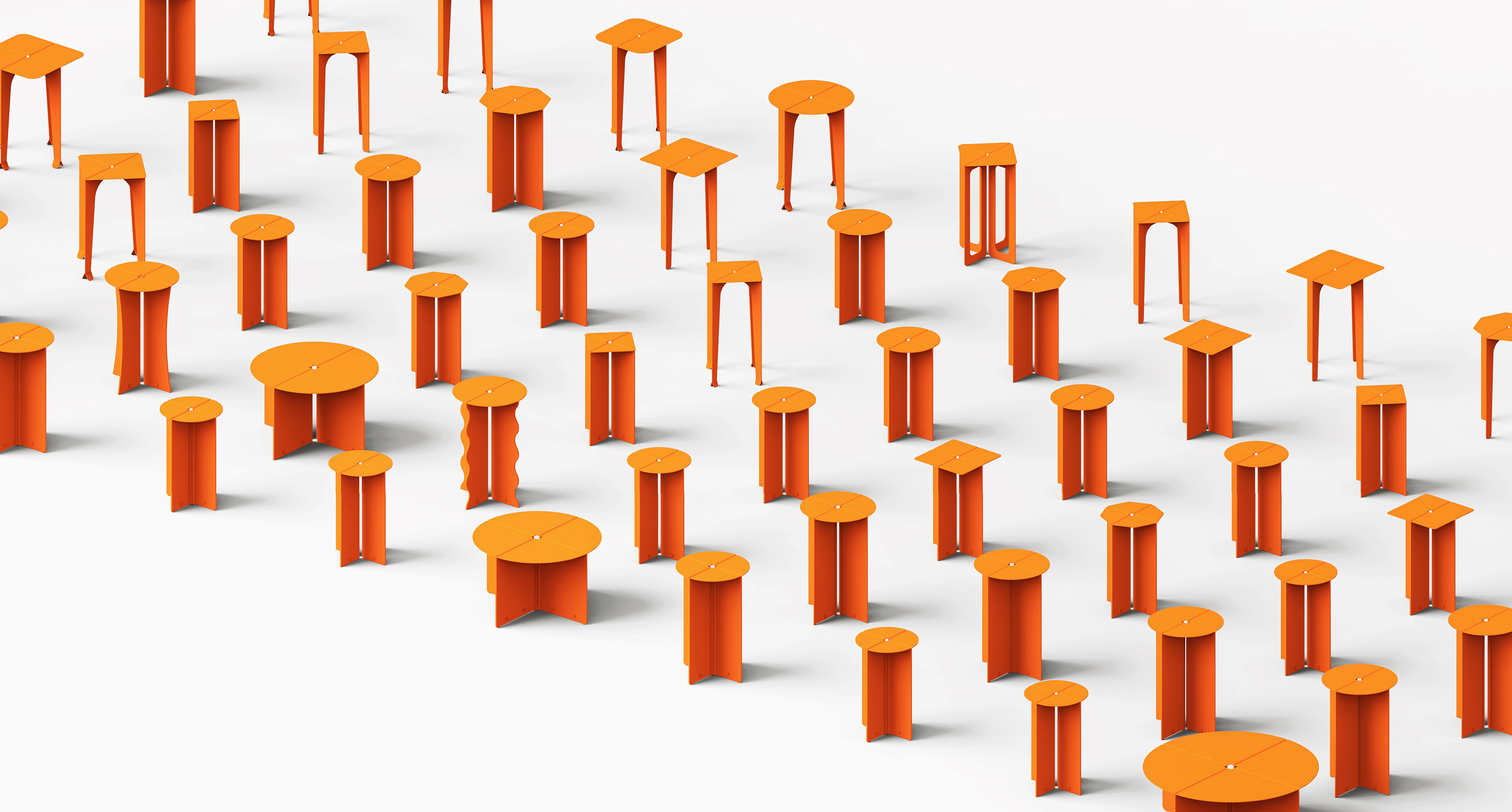 Honest simplicity is at the essence of our system. Each table fraction is made from one sheet of aluminium, laser cut around one contour, bent along two lines, and repeated four times. Add and remove parts how you like. Clash colours. Combine funky shapes. Create functional forms. Providing more but with less.